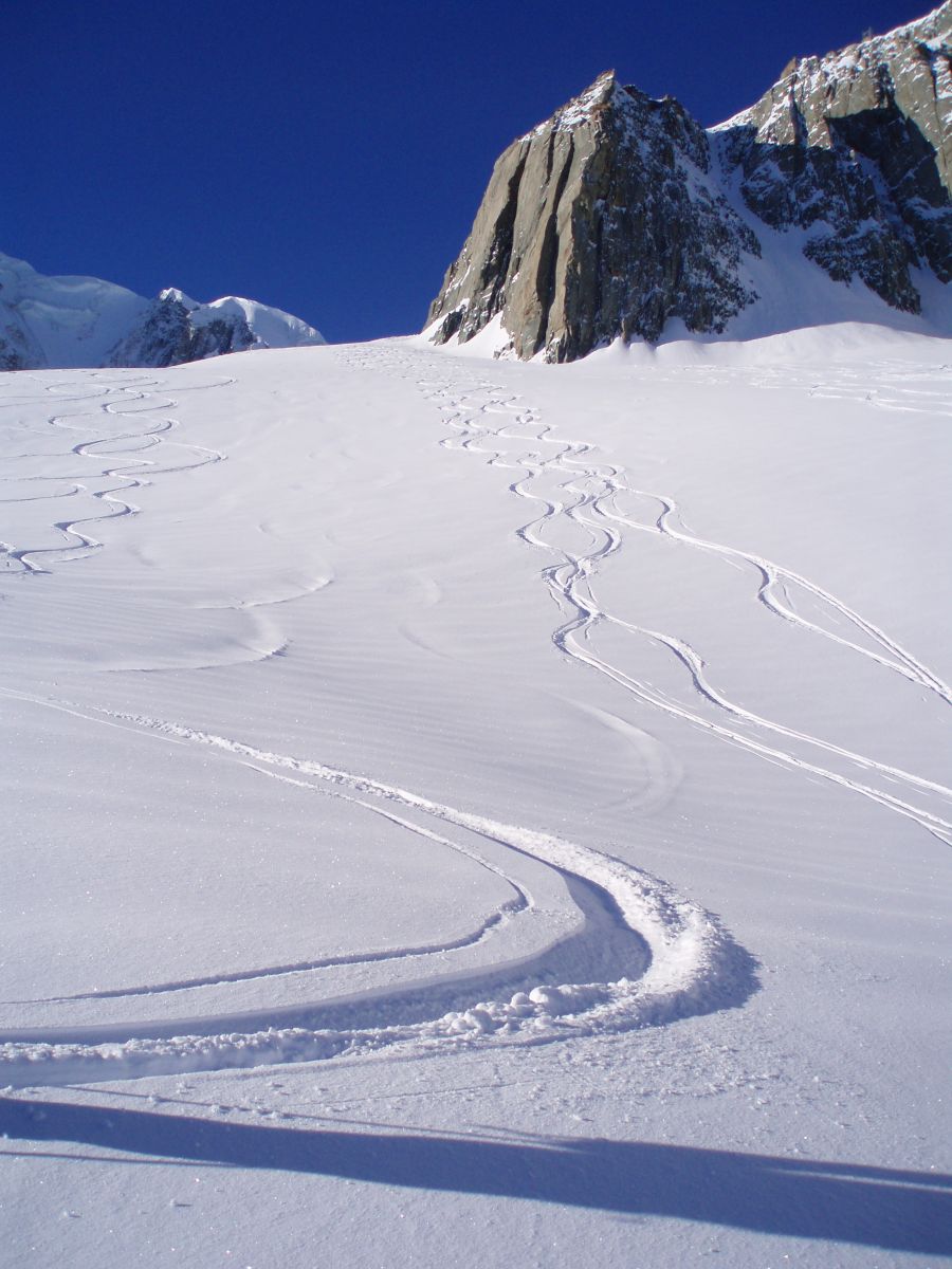 If you book several days we can try to ride a number of different off piste areas of the Mont-Blanc range like: "Le pas de chèvre", "L'envers du plan", "Le glacier de toule" etc...